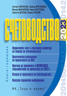 Б 11557 СЧЕТОВОДСТВО 2023 година : книга-годишник / Антон Свраков и др.. - София : Труд и право, 2023. - 548 с. : с табл. ; 24 см Други авт.: Бойка Брезоева, Велин Филипов, Надя костова, Христо Досев, Кирил Ризов. - Съдържа: нормативен текст и приложен коментар на Закона за счетоводството; практически разяснения по прилагането на НСС; преглед на промените в МСФО/МСС, задължителни за прилагане за 2023 г.; казуси от практиката на счетоводителя; полезна справочна информация. - Книгата отразява състоянието на законодателството към 10 април 2023 г. ISBN 954-954-608-310-4 1. Счетоводство - България - законодателни и директивни материали - коментари. 2. България - обществено управление 351.72:657(497.2)(094.5.07) + 657(497.2)(094.5.07) АЧ-122300000152, БЧ-122300000153 Сист. N: 107506 |